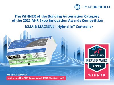 And the WINNER is… iSMA-B-MAC36NL WINNER of 2022 AHRExpo Innovation Awards Competition in the #BuildingAutomation Category! Our Hybrid IoT Controller, powered by Niagara iSMA-B-#MAC36NL, was