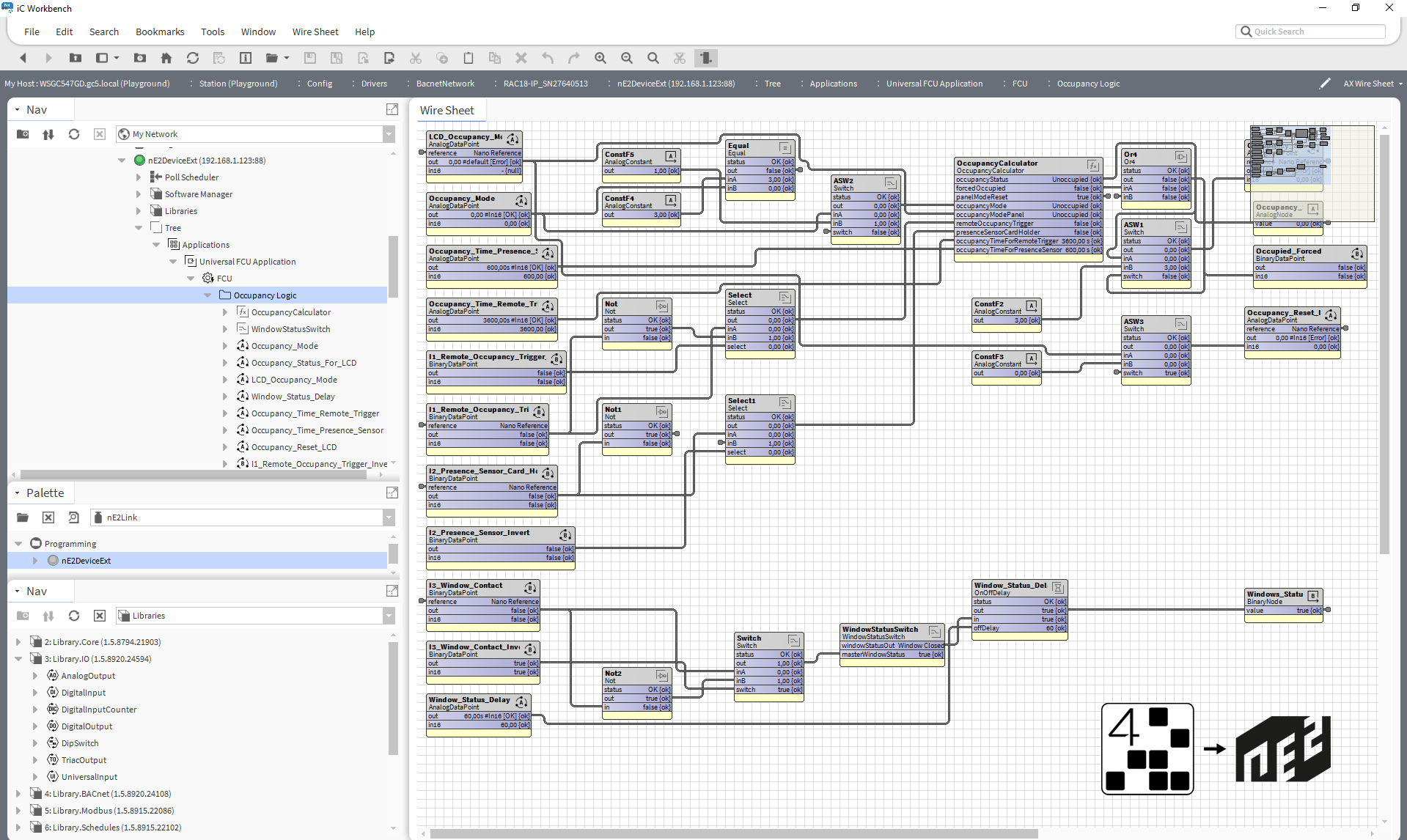 Our Room Application Controllers have become Niagara-enabled thanks to the new Niagara extension called nE2 Link (nano EDGE ENGINE link for the Niagara Framework). This drag-and-drop extension for BACnet and Modbus drivers enables seamless commissioning, programming, and control of RAC18-IP directly in Niagara Workbench.